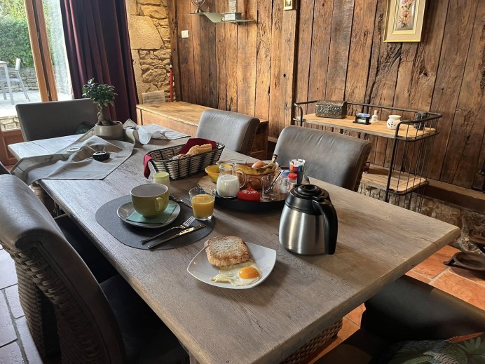 On sunny days, breakfast is served on the terrace, where you can enjoy a pleasant view of the sunrise in a calm and privileged setting. On cooler days, it is served indoors, in a comfortable and welcoming atmosphere.